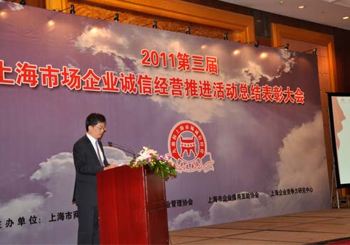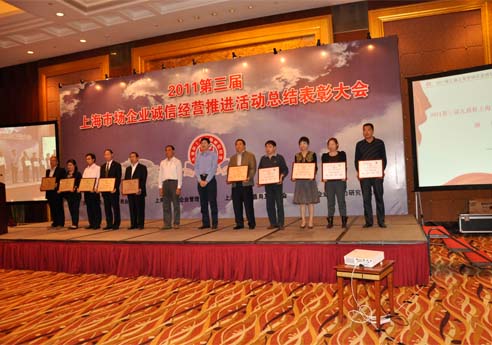 第三届上海市场企业诚信经营推进活动总结表彰大会于2011年10月13日,假座在东锦江大酒店成功召开。本次活动于今年5月正式启动,共有1320家企业递交申请,最终有169家企业荣获2011上海市场诚信经营先进单位称号。其中不乏宝钢集团、富春控股、致达集团等行业龙头企业,更有交大慧谷、联欣科技等高科技企业;其中具有中国驰名商标18家、中国名牌22家、全国用户满意企业等其他国家级奖项34家;上海名牌47家、上海著名商标40家、市文明单位33家。 格林豪泰酒店管理集团CFO黄立达做企业代表感言 大会开始首先由上海市社会诚信体系建设联席会议办公室、上海市征信管理办公室、上海市经济和信息化委员会信用管理处副处长张学军致辞,张学军在致辞中表示:诚信是企业生存和发展的法宝,上海企业要树立诚信先进的典型,传播诚信知识,努力营造上海市场诚信健康的环境, 上海市商业企业管理协会秘书长陈文富做工作报告 随后由上海市商业企业管理协会秘书长陈文富在大会中做工作报告,详细介绍了本次诚信经营推进活动从方案制定到推荐企业评审以及后期宣传,做了细致的报告。在工作报告结束之后,由上海企业竞争力研究中心主任范林根就当前经济形势、企业对策与诚信经营做主题演讲,并对当前国际国内的经济形势做分析。 江苏三博环保科技有限公司市场部经理宋志清代表1050家企业做上海市场企业诚信经营公开承诺。此外众多相关机构、行业和媒体的领导和代表也参加了本次表彰大会,并为此次获奖的企业上台颁奖。 格林豪泰酒店管理集团CFO黄立达做企业代表感言,阐述了只有诚信一个企业才有生命力,才有希望,诚信是一个企业长久发展的基础,我们应当像是爱护自己的生命一样,爱惜自己的企业,让诚信成为企业生存和员工信仰。最后,由上海市商务委市场秩序处处长吴建业为本次诚信推荐活动做总结讲话,吴处长既充分肯定了诚信经营推进活动,也对活动提出了希望。 至此,本次大会圆满结束。 领导为获奖企业颁奖上海热线为本次活动做现场直播:http://club.online.sh.cn/gb/content/2011-10/18/content_4893695.htm