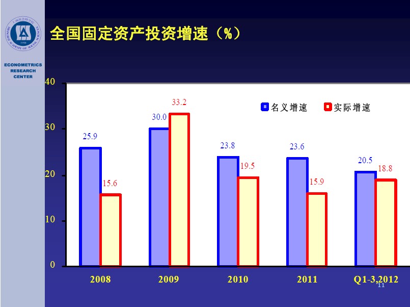 固定资产的增速,名义是下降,实际是基本上有所增长,但是这里有误差,跟前几年相比,这两年还是差不多。