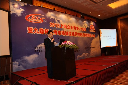 2013上海企业竞争力论坛暨九鼎杯上海市场诚信经营推进活动表彰大会现在就开始了!我是上海电视台主持人、著名演员孙启新,很高兴由我主持一年一度的企业竞争力的论坛。
