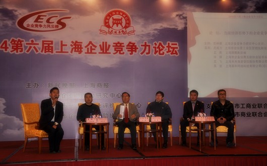 上海市经信委工业管理处副处长高成方,上海商报副主编王鹰,上海市企业信用互助协会秘书长徐镇、上海天天渔港餐饮股份有限公司副总经理王飞,上海慕和网络科技有限公司CEO吴波,上海企业竞争力研究中心主任、博士、副研究员范林根先生主持就当前经济形势下的企业竞争力提升的论坛报告。