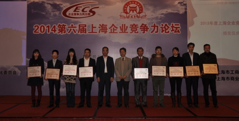 主持人:恭喜各位,合影留念,谢谢,请各位入席,也感谢我们的颁奖嘉宾。现在有请第二批获奖企业代表上台,有请颁奖嘉宾上海市商业联合会副会长、秘书长,上海企业竞争力研究中心理事长刘荣明,以及上海市质量技术监督局原总工程师陈庆榆上台为获奖企业颁奖。