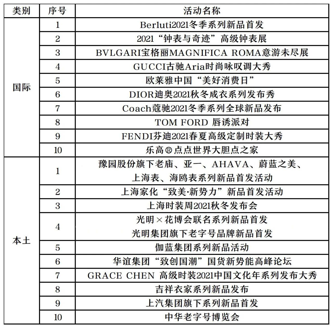 (含国际品牌十佳新品首发活动、本土品牌十佳新品首发活动)