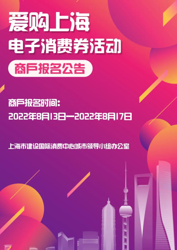 为贯彻落实市委、市政府决策部署,推动《上海市加快经济恢复和重振行动方案》促消费相关政策实施,经市政府同意,本市将发放“爱购上海”电子消费券。现就商户报名事宜公告如下: