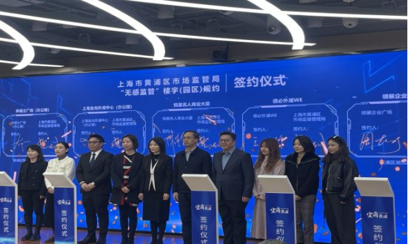 作为本次活动的亮点之一,黄浦区发布了“无感监管”试点楼宇项目。区市场监管局与BFC外滩金融中心、来福士广场、上海金光外滩中心、恒基名人商业大厦、德必外滩WE、领展企业广场、上海广场7幢试点楼宇运营方现场签约,这标志着黄浦区在探索智慧监管、延伸服务方面迈出了重要一步。据介绍,通过数字化手段,监管部门将更加精准、及时掌握入驻企业的经营情况和服务需求,为入驻企业提供行政指导和政务服务。相关部门通过将监管与服务的触角延伸至企业“家门口”,提升隐患发现和需求采集的精准度与实时性,真正做到“无事不扰、有事必应”。